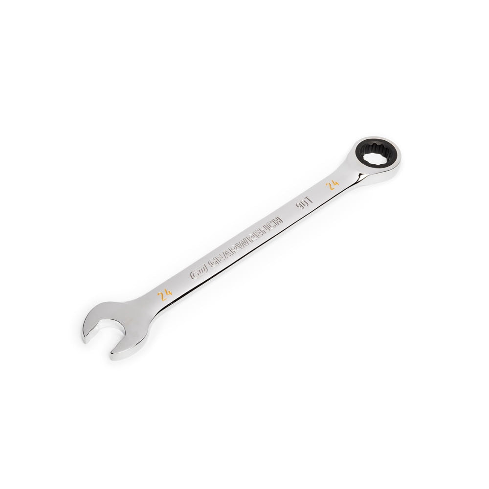 GEARWRENCH 90-tooth ratcheting wrench swing arc of just 4° turns fasteners in extremely tight spaces. Longer, wider beam delivers improved reach, leverage, and comfort. Large color-coded SAE/metric markings make size identification easy. All exceed ASME performance specs and come with the trusted GEARWRENCH Limited Lifetime Warranty.